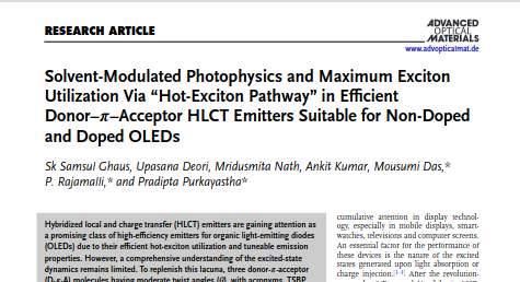 P. Rajamalli, and Pradipta Purkayastha ;Advanced Optical Materials, 2026, 14, e03122